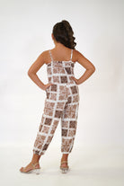 One piece jumpsuit with adjustable spaghetti straps, stretchy waistband, pockets, and tapered at ankle.Made of extra soft bamboo cotton.