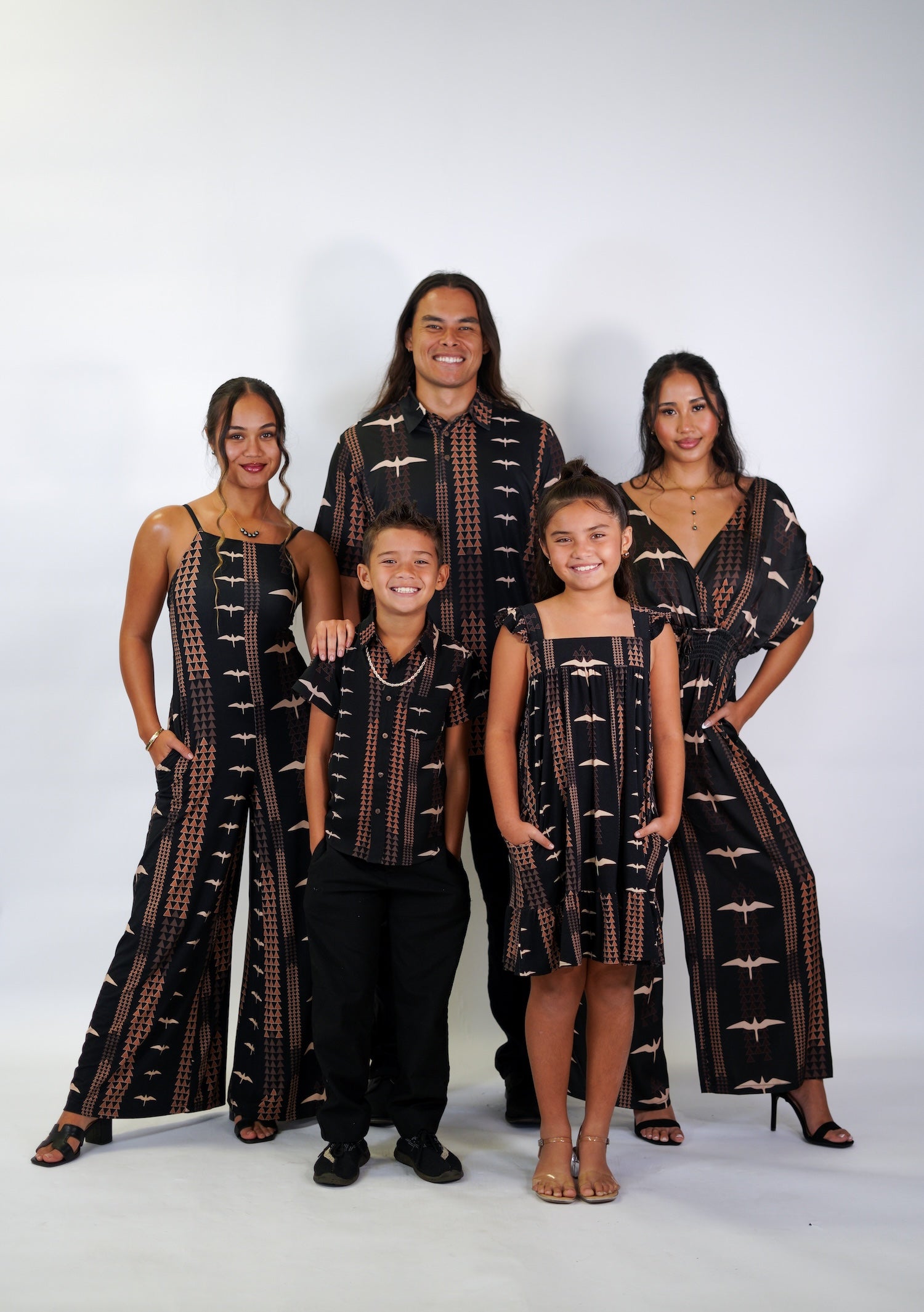 The Hilo Jumpsuit is part of our matching apparel collection! Available in Lōkahi Black.