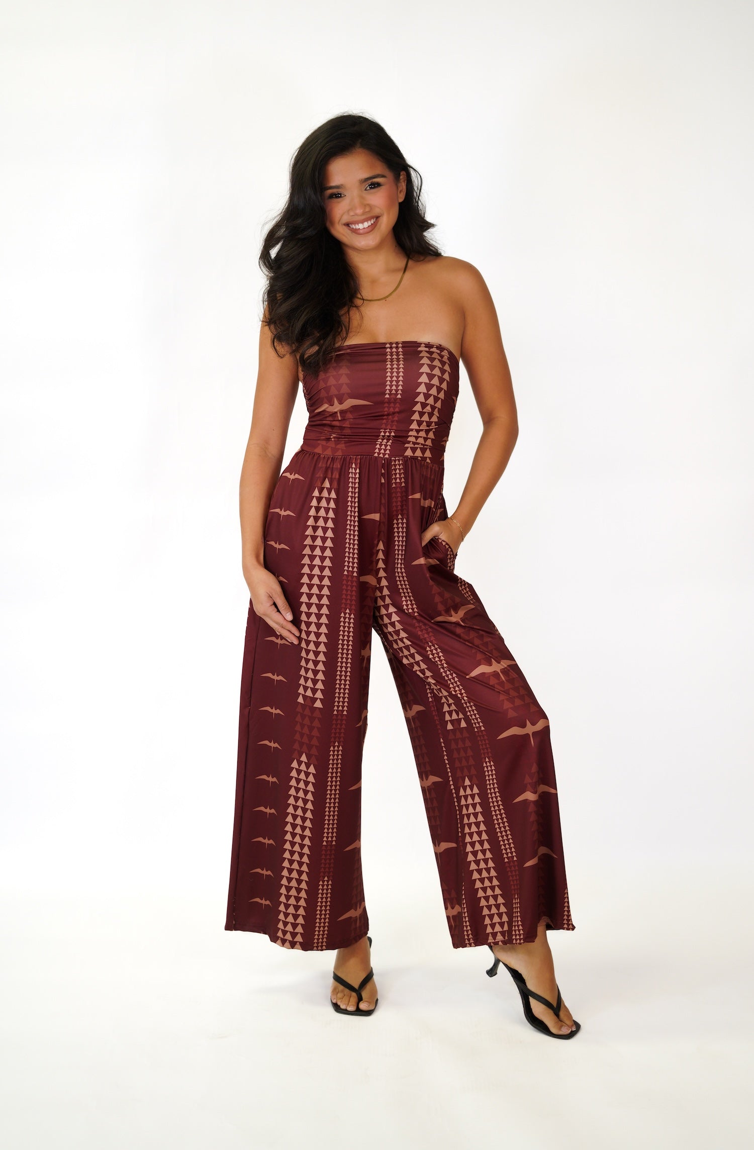 The Kimora Jumpsuit is part of our Lōkahi Red Ohana Matching Apparel Collection.